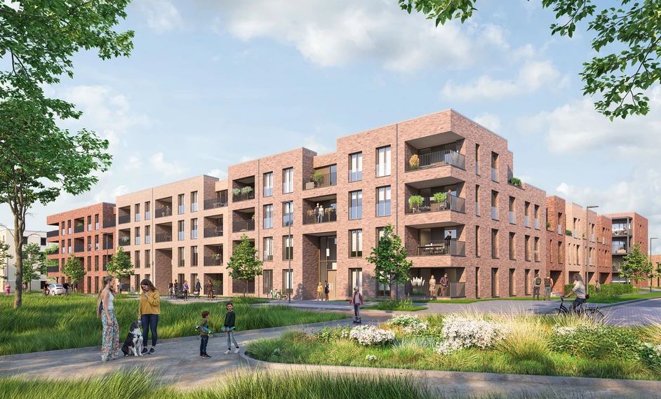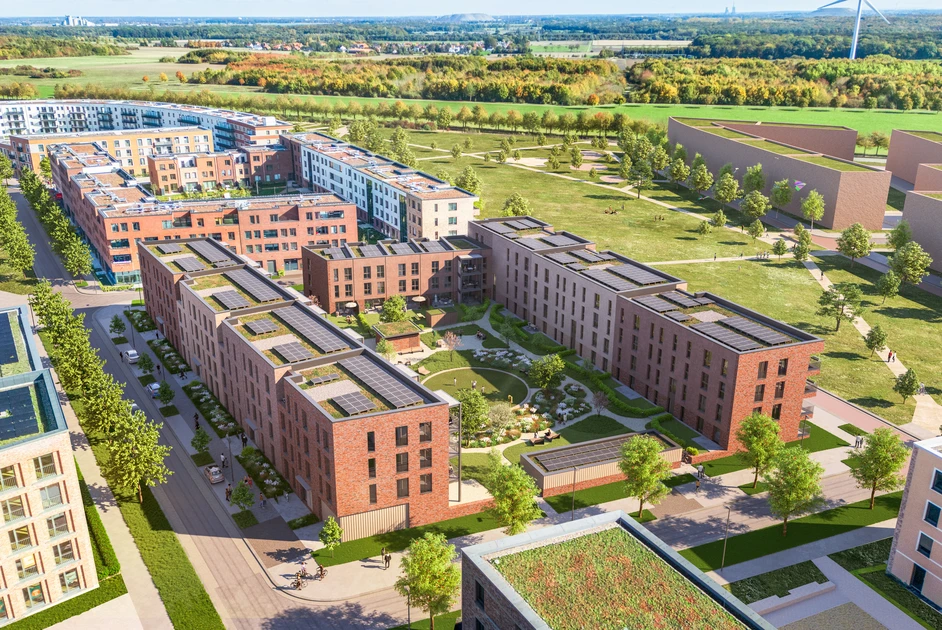 In Bemerode, einem der bevölkerungsreichsten Stadtteile der Landeshauptstadt Hannover, wurde auf dem Kronsberg Niedersachsens größtes Wohnungsbauprojekt „Kronsrode“ erfolgreich realisiert. Direkt am grünen Stadtteilpark soll ein attraktives, viergeschossiges Gebäudeensemble im KfW 55-Standard entstehen. Es besteht aus 7 Mehrfamilienhäusern und 4 Reihenhäusern sowie einer Tiefgarage. Für die Hochbauplanung wurde ein bundesweiter Architektenwettbewerb ausgelobt, den das renommierte hannoversche Architekturbüro Kiefer & Sander mit dem 1. Preis gewann. Auf dem 5.800 m² großen Grundstück wurde eine attraktive, gestaffelte Blockrandbebauung mit straßenseitig strukturierter Vollklinkerfassade umgesetzt. Eine besondere Wohnqualität wird zusätzlich durch den weitläufigen, begrünten und als Garten gestalteten Innenhof geschaffen.