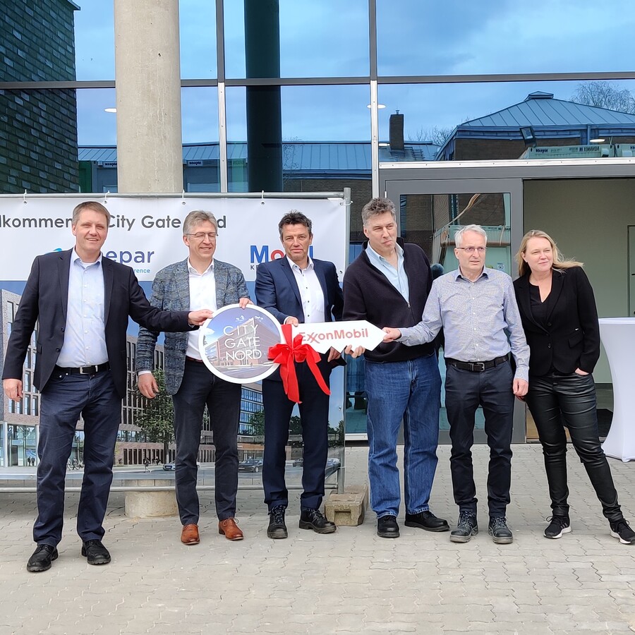 Hannover, 31. März 2022 – Das City Gate Nord im 2. BA ist fertiggestellt und wurde den Mietern ExxonMobil und der Mobil Krankenkasse pünktlich übergeben. Die Hannover Region Grundstücksgesellschaften (HRG) und die Delta Bau AG aus Hannover übergaben feierlich der Geschäftsführung der Mieter die Schlüssel.