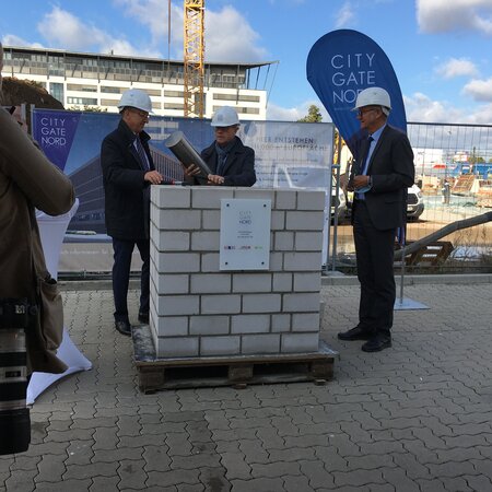 Grundsteinlegung für das Torhaus Expopark an der Mailänder Straße 4